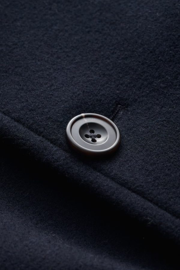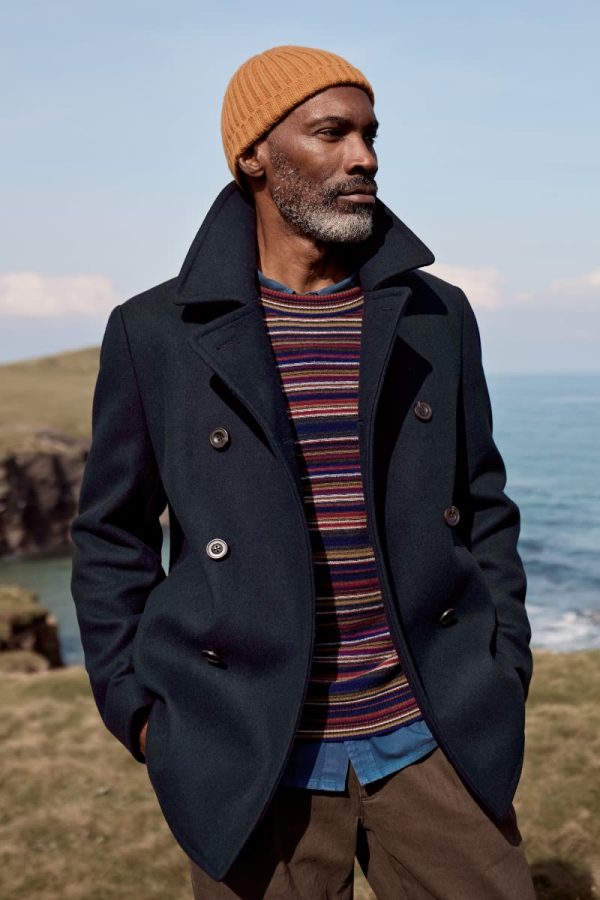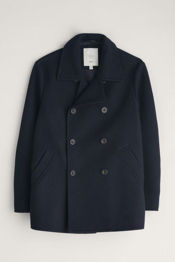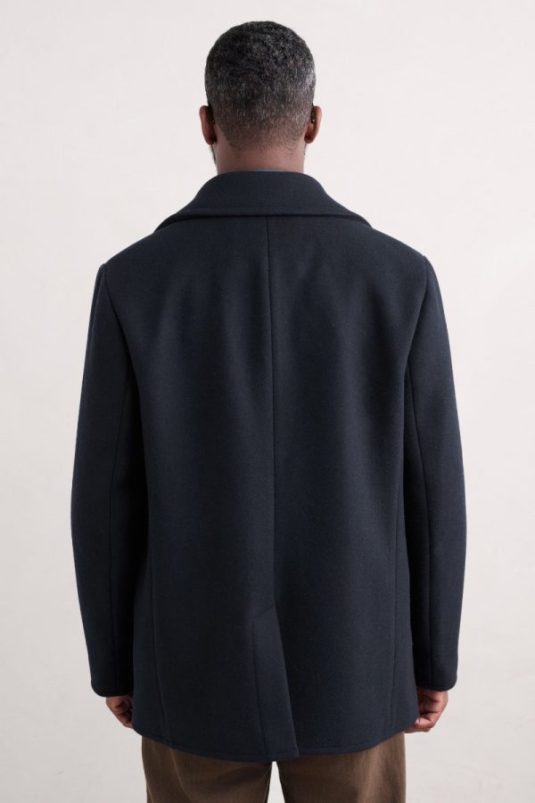 A classic double-breasted winter coat, made from a warm wool blend. The deep notched collar, mock-horn buttons and jet pockets are a nod to traditional mariner’s coats, while deep split at the back and smooth lining make for easy movement.