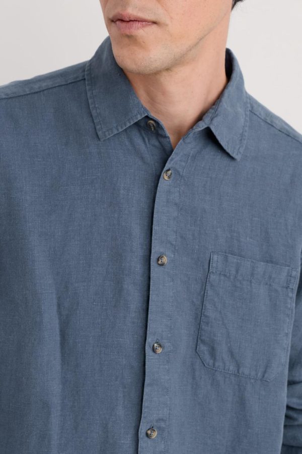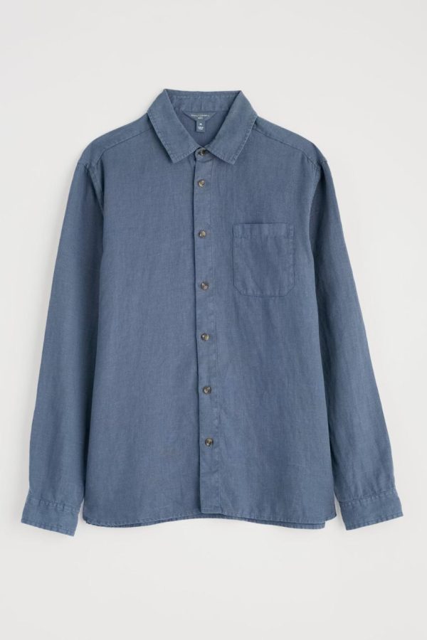 An easy-fitting shirt made from breathable linen, with long sleeves that are easy to roll up for casual weekends. The curved hem is slightly stepped so it looks great untucked, or worn unbuttoned over a T-shirt. Garment-dyed for soft and characterful colour.