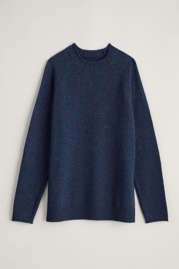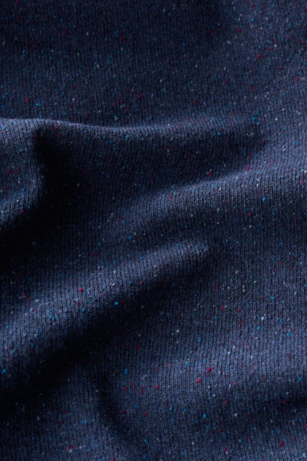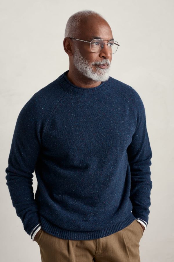 A mid-weight knitted men’s jumper in a tonal melange. Saddle shoulder seams and rolled cuffs allow for comfort and ease of movement. Finished with a pork pie neckline and ribbed hem. Style with jeans or trousers for days in the city or by the coast.
