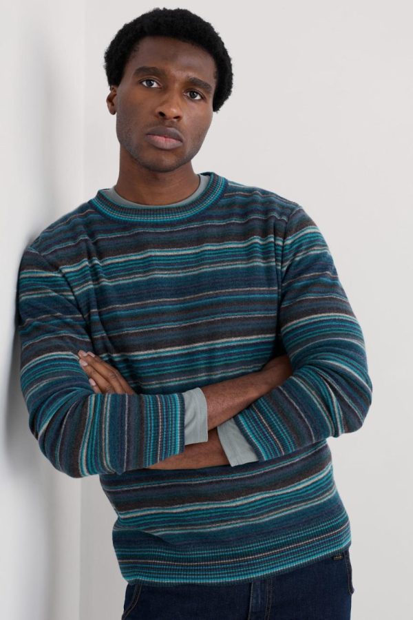 Crafted from a rich lambswool blend, our stripey Notebook jumper is soft and supple to wear. Its lightweight knit is warm without weighing you down, making this the perfect piece for cooler days. We’ve used garter stitch for a subtly textured feel, while ribbed trims at the crew neck, cuffs and hem give the jumper a classic finish.
