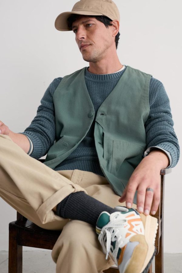 Woven from organic cotton, our Men’s Metern Waistcoat is inspired by the utilitarian workwear of Cornwall’s craftsmen. With a neat button closure, durable reinforced pockets and a handy section to stow a pen or pencil, wear with a favourite shirt now, then over a jumper as the weather gets colder.
