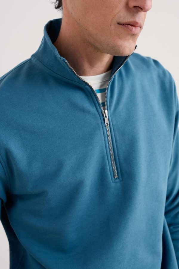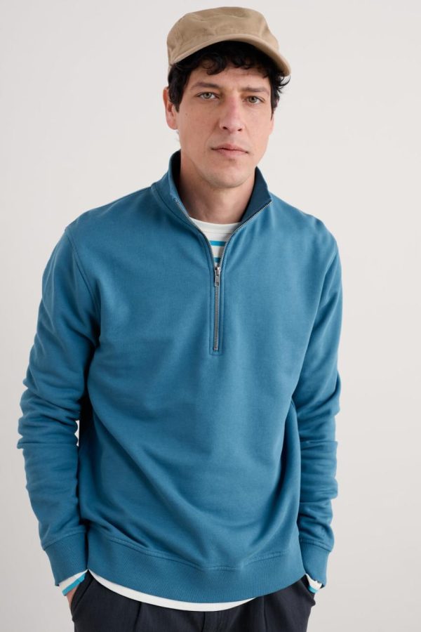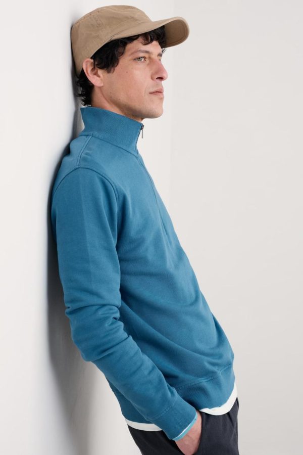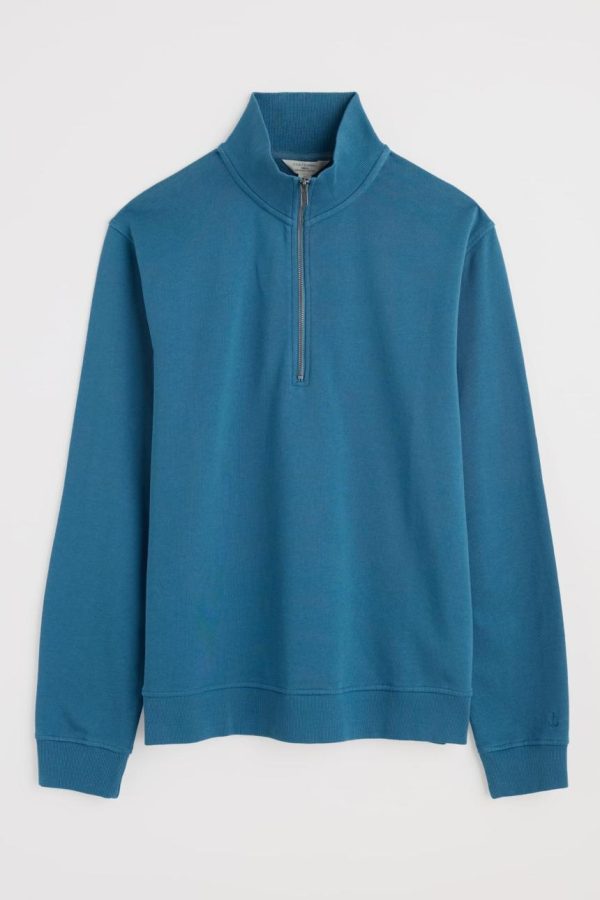 The perfect everyday sweatshirt, with a high zipped collar and a deep rib at the cuffs, hem and neckline. This easy layer is made from loopback organic cotton terry that’s been pigment-dyed, giving it a worn-in colour that should develop more character with every wear.