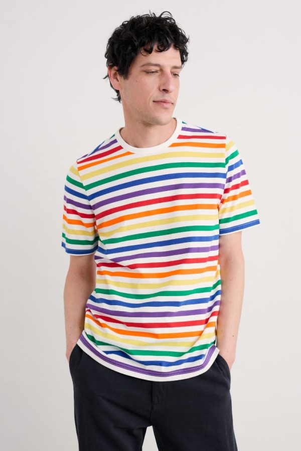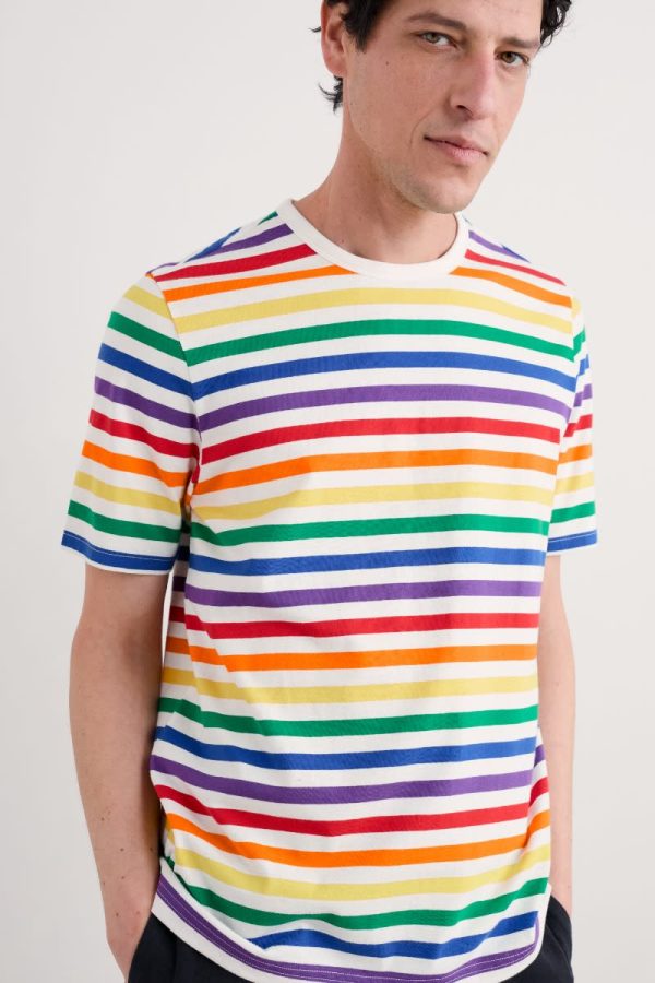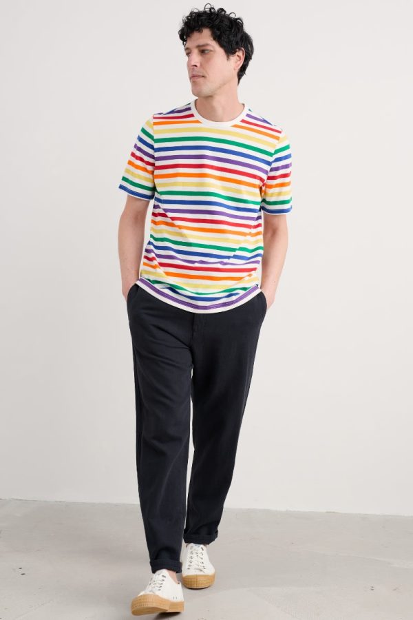 A limited-edition Sailor Stripe T-shirt to support inclusion and equality for LGBTQ+ communities in Cornwall and beyond. Made from GOTS-certified organic cotton jersey, our Sailor T-shirt is super-soft, breathable and feels great against the skin. Our colourful Pride stripes are yarn-dyed for a rich and lasting colour.