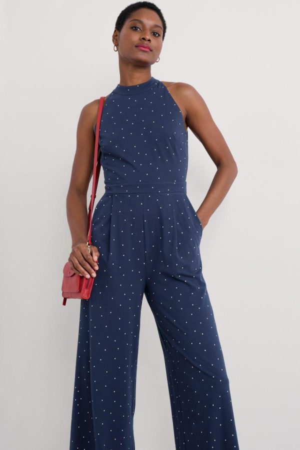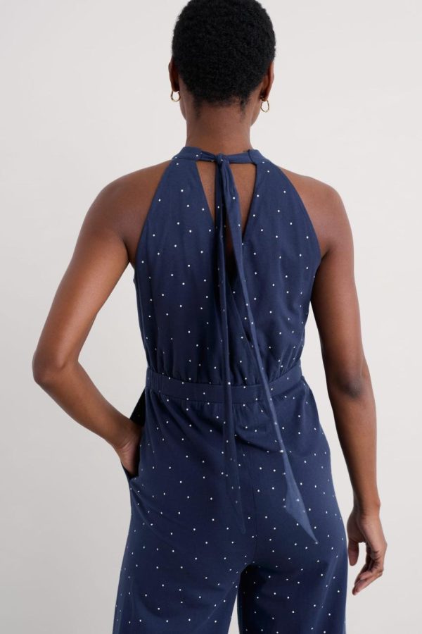An elegant alternative to a long dress, the Belyars Jumpsuit has a fitted sleeveless bodice and straight, full-length trousers. It’s crafted from soft organic cotton with added stretch for comfort and pleats below the waistband for a touch of easy volume. The high neck curves around into a self-fabric neck tie, adding vintage-style interest to the back of the jumpsuit. A versatile piece for effortless summer dressing.