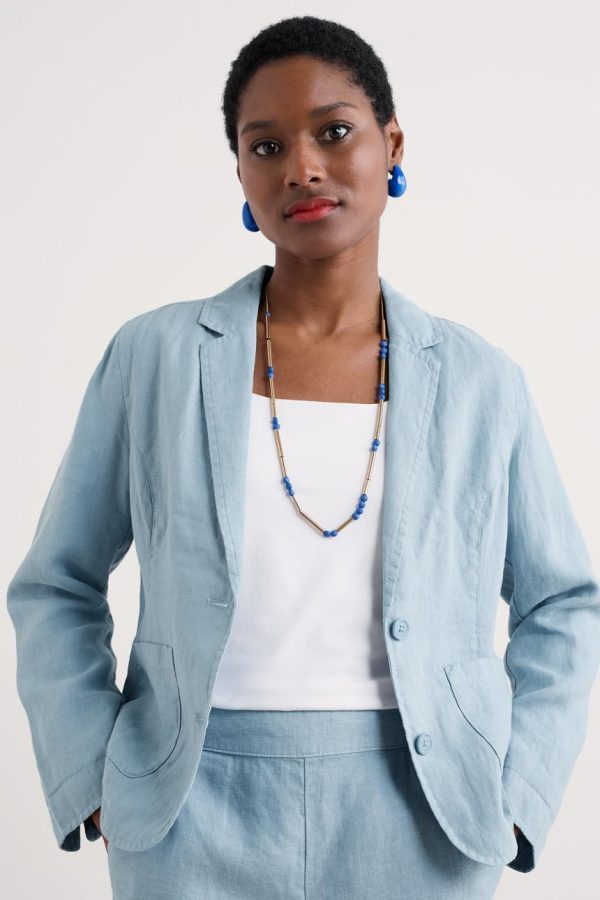 The perfect summer jacket, which balances the softness of garment-dyed linen with the structure of a classic blazer. A notched collar, bracelet-length sleeves and a panelled, fitted shape make it a great light layer on special summer occasions, while the supple fabric and patch pockets nod to our heritage of comfortable, practical workwear.