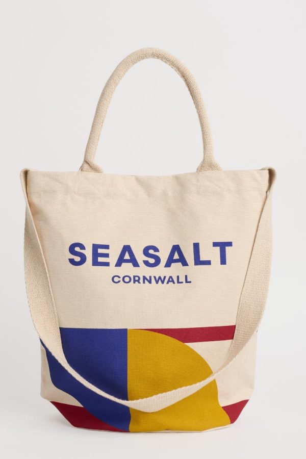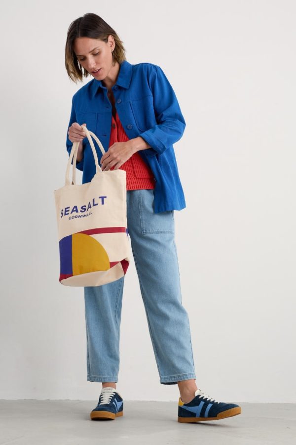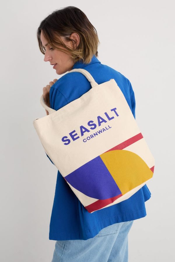 A wonderfully handy canvas tote bag, made from robust 12oz woven organic cotton. It features a colourful abstract design on both sides along with our Seasalt logo. The unlined main compartment fastens with a magnetic closure, and inside there’s a slip pocket to hold those smaller items. Carry it over your shoulder with the long strap or use the padded handle.