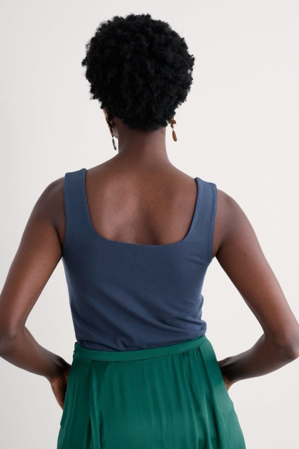 A wardrobe (and suitcase) essential for the summer. Our versatile Cloud Pass vest is made from GOTS-certified organic cotton with added stretch. Its high-stretch, double-layered jersey hugs your body for a clean look while creating a flattering outline. A square neckline front and back gives the simple sleeveless vest a stylish feel.