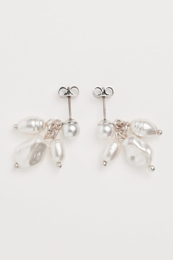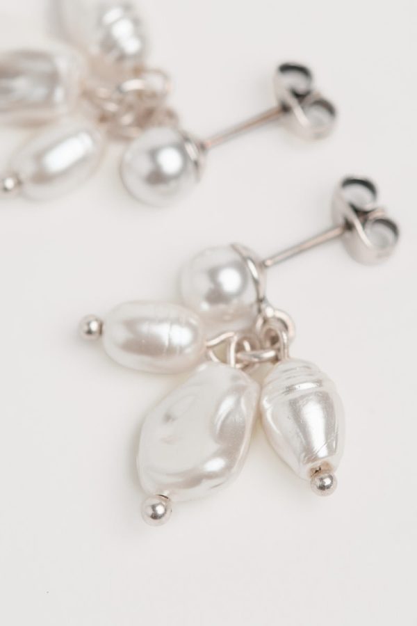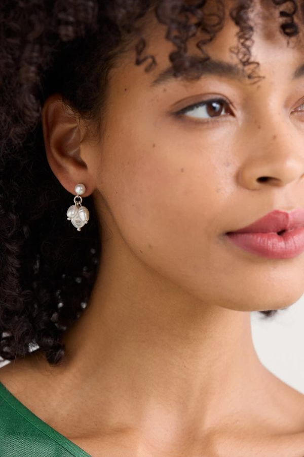 Pretty glass beads form a cluster from a single freshwater pearl stud, creating an elegantly delicate effect. The glass beads and pearls catch the light, giving the drop earrings a subtle glow. They’re held securely in place with posts and butterflies.