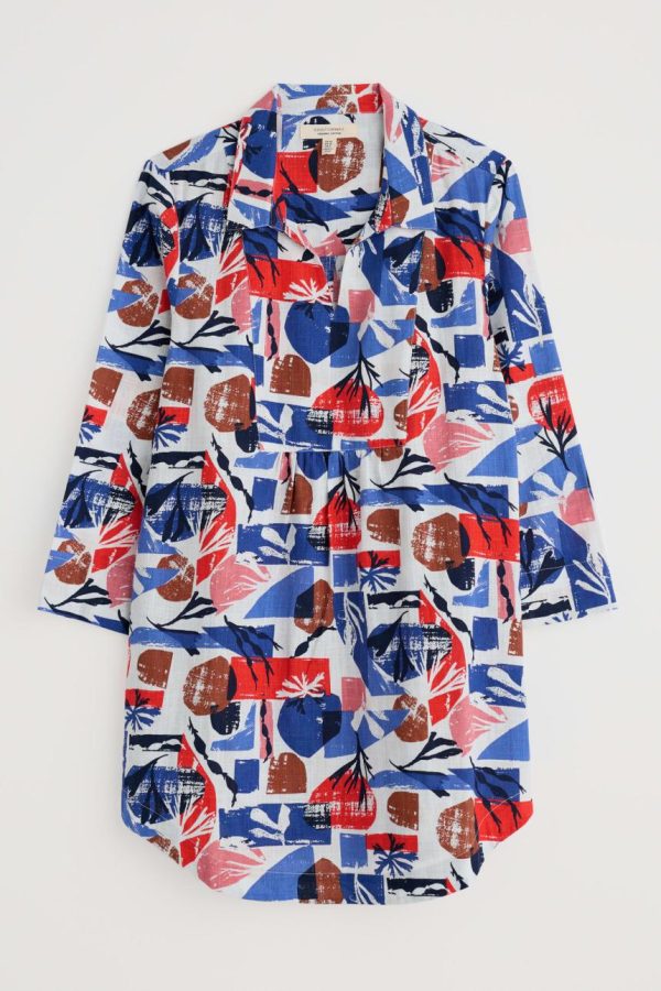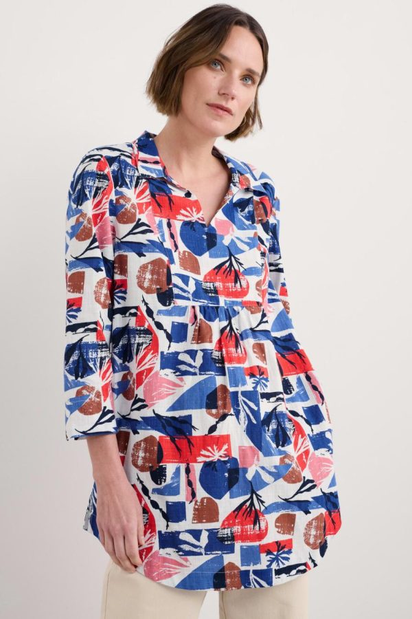 Crafted from a silky, soft organic cotton and viscose blend, our Fal Water Tunic sports a relaxed fit and curved hem. Gentle gathers add subtle detail to the bib, and bracelet-length sleeves can be turned up with ease. Finished with side seam pockets and a box pleat at the back for ease of movement.