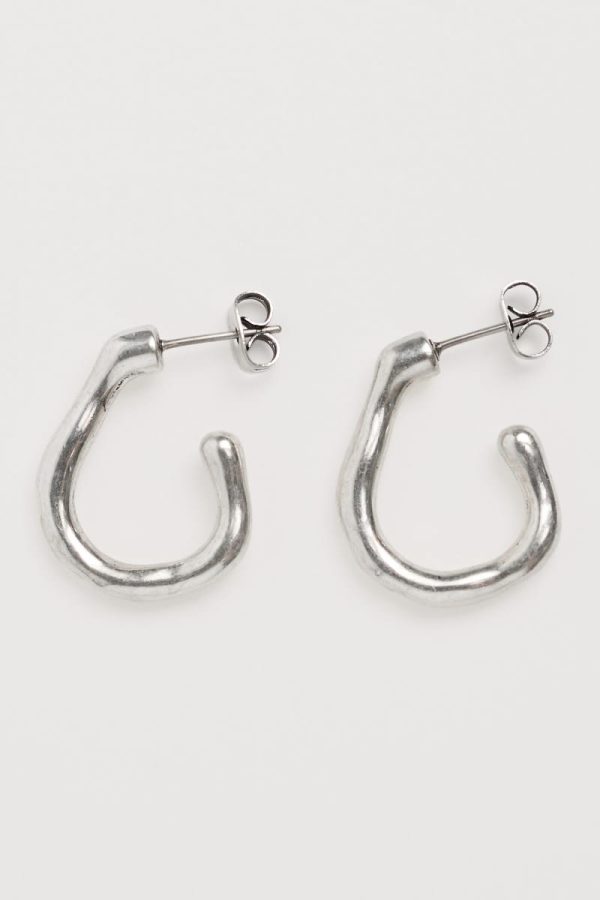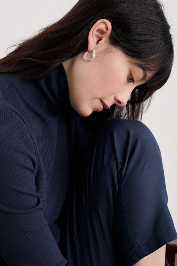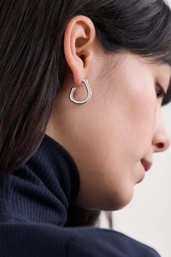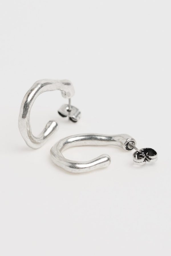 Our silver-tone Feroner earrings are a stylish and modern version of the popular half hoop design, with an irregular shape for a natural feel. Their gently textured finish gleams when the earrings catch the light. Perfect for both daytime and evening wear.