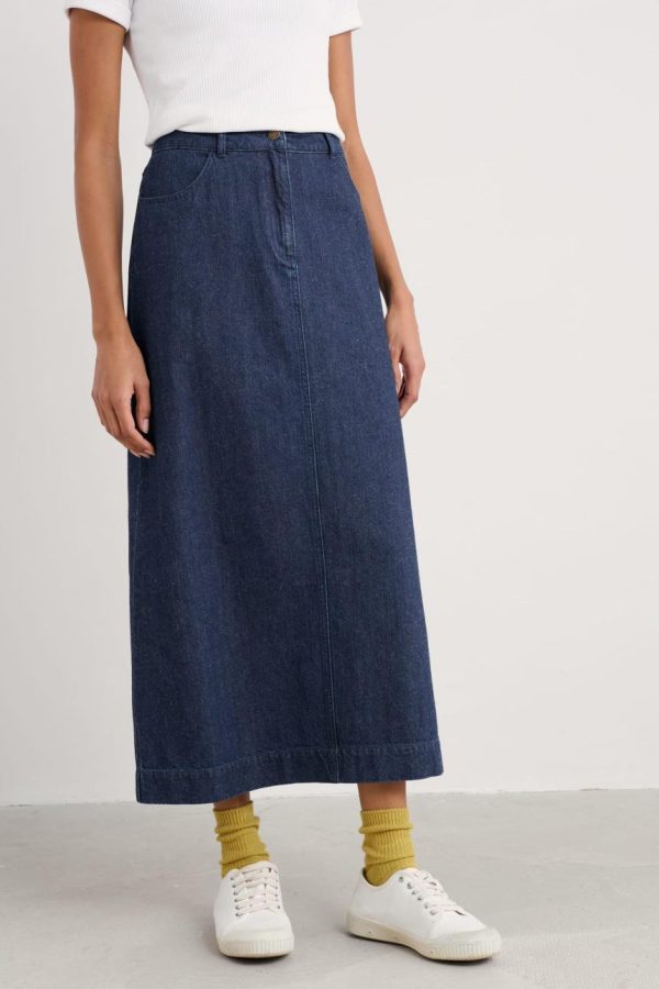 Every wardrobe needs a simple denim skirt, and our latest edition is a versatile styling piece, with a modern, straight fit. The V-shaped split at the back gives you ease of movement as well as an extra detail, while we’ve added a touch of stretch to the organic cotton for comfort and fit. Wear throughout the seasons, teamed with pumps and a classic T-shirt.