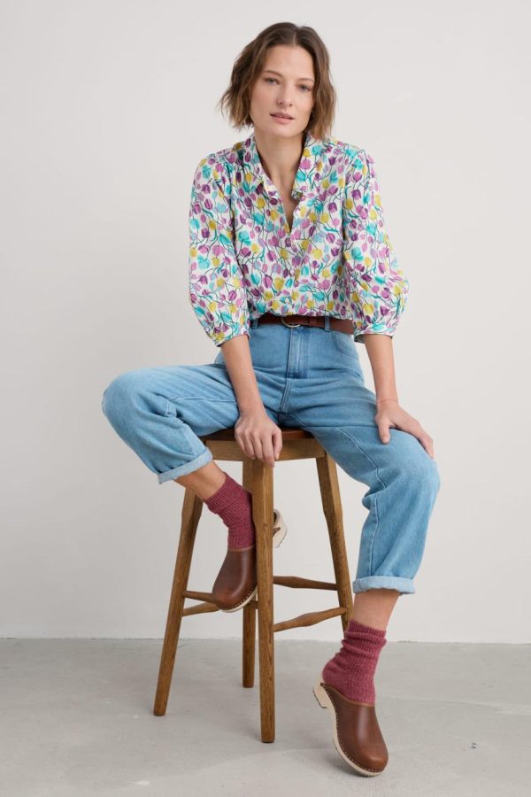 A printed organic cotton blouse with gathered cuffs and shoulder seams, which create a lovely volume through the sleeves. A great piece for layering through the seasons.