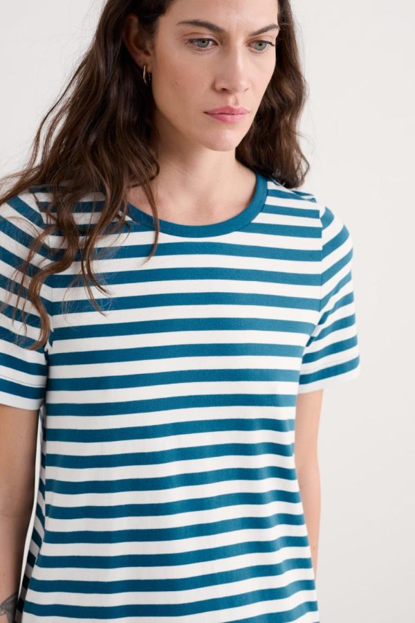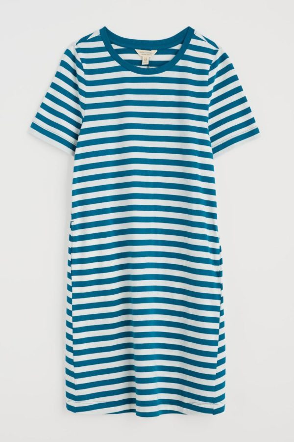 Just what your wardrobe (or suitcase) needs this summer. Our wonderfully easy-wearing T-shirt dress is made from soft GOTS-certified organic cotton jersey. Its above-knee length and relaxed flared shape makes it cool and comfortable for warmer days. We’ve finished the short-sleeve dress with a trimmed crew neck and of course, a pair of side pockets.