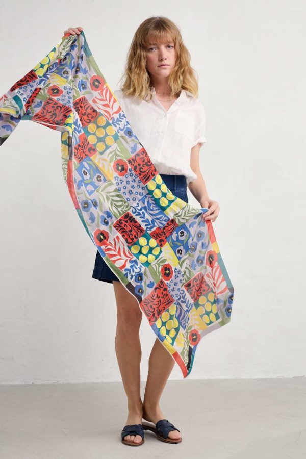 Finish off your look with our May Garland Scarf, made from an airy blend of organic cotton and TENCEL™ for a supple drape and smooth handfeel. Choose from our collection of carefully curated prints, inspired by our Cornish home. A classic rectangular shape, you can wear the May Garland loose, draped or knotted.
