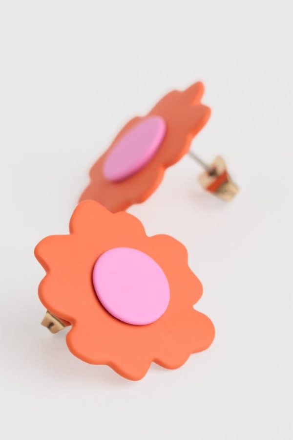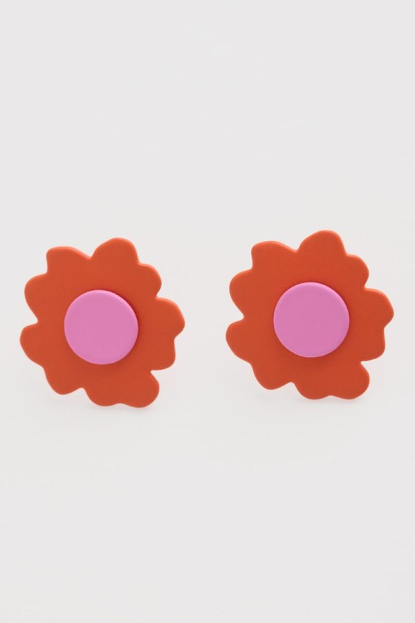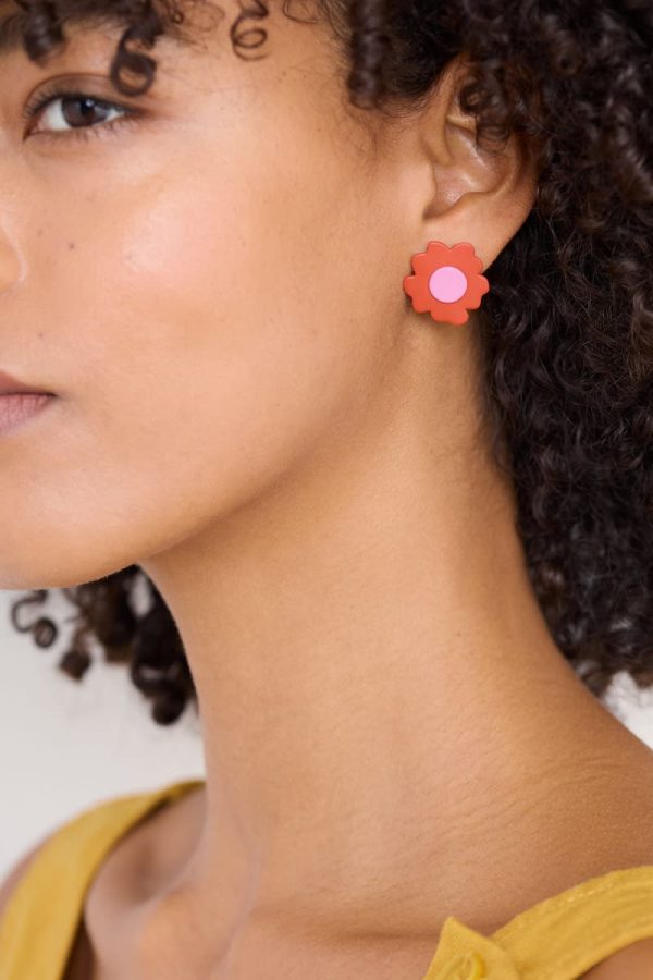 Charming little stud earrings in joyful colours. The resin coating creates a distinctive smooth finish as well as giving the organically shaped petals that lovely vibrant shade. Perfect for adding a splash of accent colour or to complement a floral print.