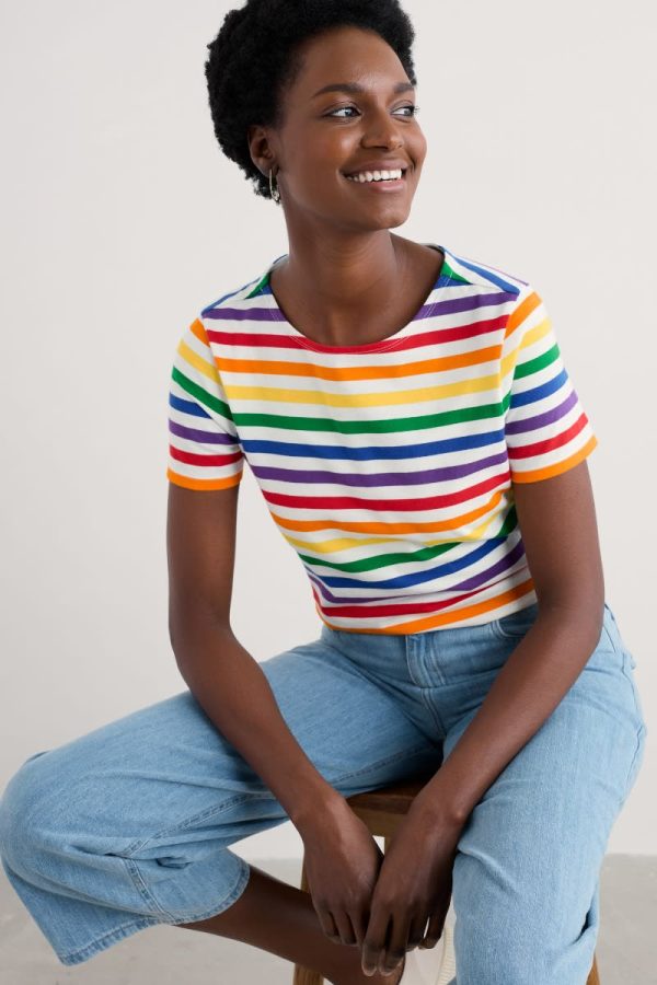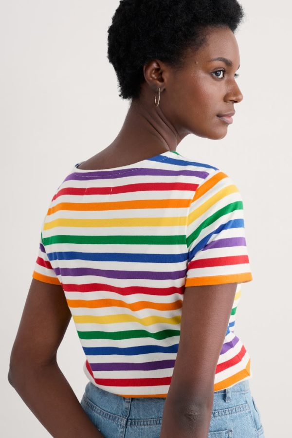 A limited-edition Sailor Stripe T-shirt to support inclusion and equality for LGBTQ+ communities in Cornwall and beyond. Made from GOTS-certified organic cotton jersey, our Sailor T-shirt is super-soft, breathable and feels great against the skin. Our colourful Pride stripes are yarn-dyed for a rich and lasting colour.