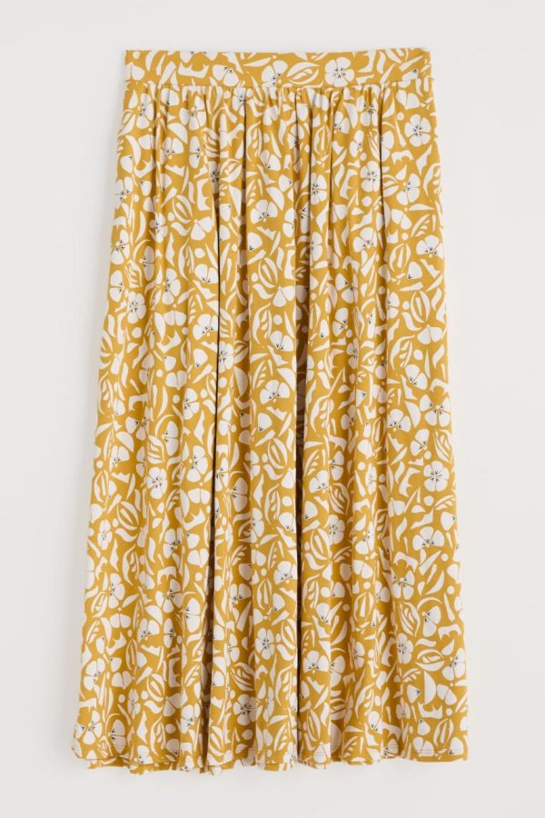 A summery skirt made from soft organic cotton jersey, with gentle gathers and handy pockets. The versatile print is perfect for holiday packing; pair with a crisp white T-shirt for days by the shore, and tonal accessories for dinners al fresco.