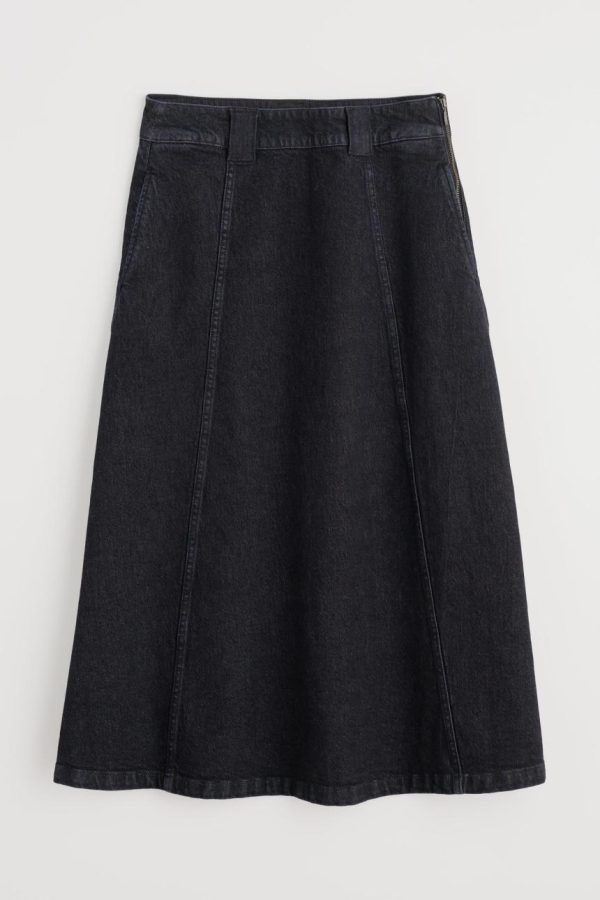 We love the fullness of the Restharrow skirt, as it flares out from the waist to the ankles. It’s made from organic cotton stretch denim, which has been overdyed for saturated colour. Panel details add extra character as well as enhancing the flared A-line shape. The discreet zip and a pair of side pockets complete the design. An easy-to-wear piece that will keep looking better with wear.
