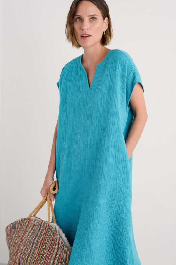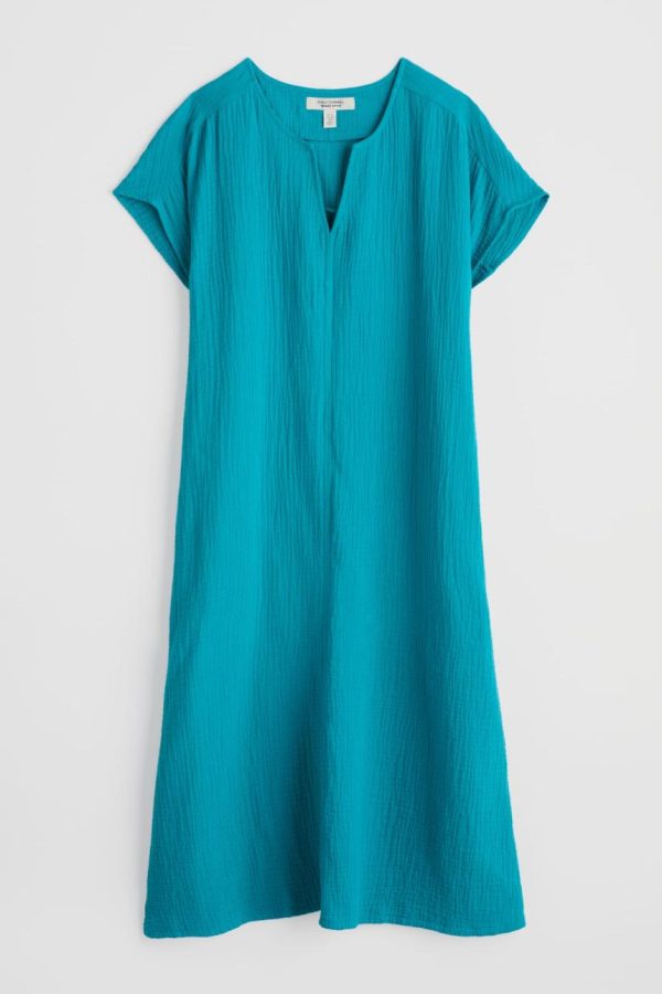 Just made for relaxed summer days. Our Sand Patterns Dress is crafted from woven GOTS-certified organic cotton. Its lightweight double-gauze construction gives the dress a floaty feel and a subtle texture. We’ve finished it with a pretty notch neckline and a pair of in-seam pockets.