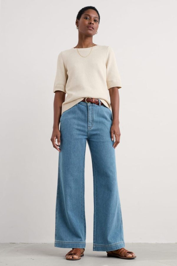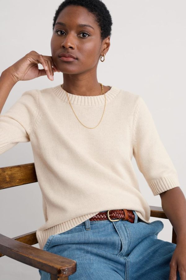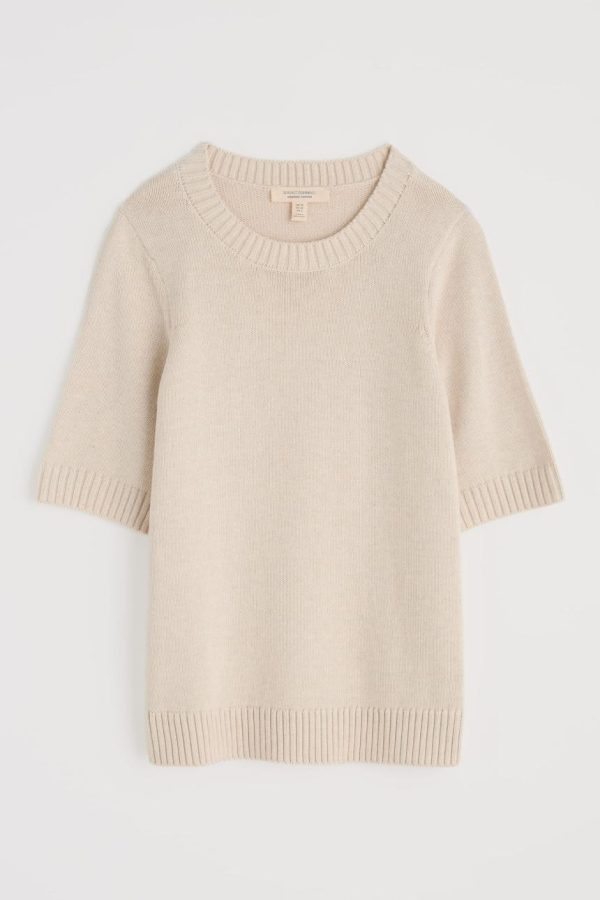 Our Studio Top is knitted from soft and breathable organic cotton, with a jersey stitch for a comfortable and stretchy feel. It has an easy fit through the body, with half sleeves and a simple round neck. We’ve finished it with neat ribbed trims at the neck, cuffs and hem. A versatile top to wear on its own or layer for cooler days.