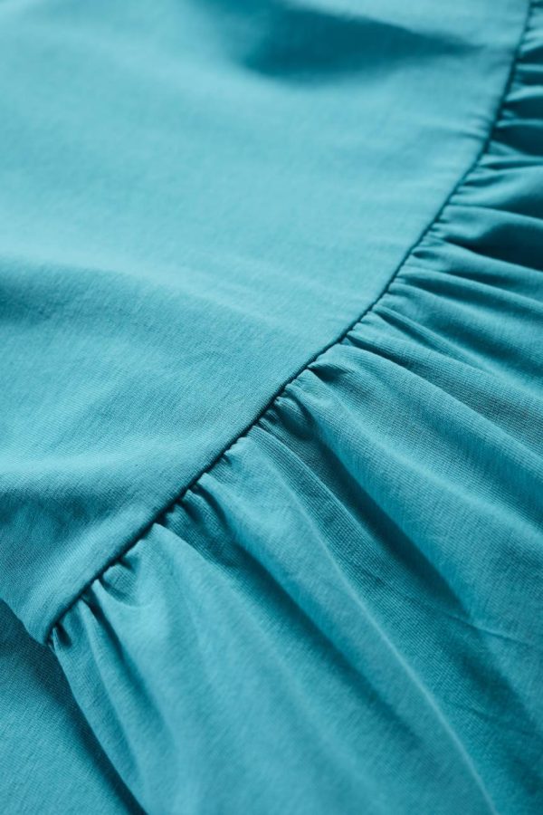 The perfect sunny-day dress. Our Sun Splendour sleeveless dress is made from cool and soft GOTS-certified organic cotton jersey, with added stretch for comfort and fit. Soft gathers at the waist bring gentle volume to the knee-length skirt. The deep scoop neckline is finished with a matching trim.