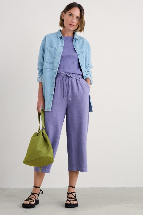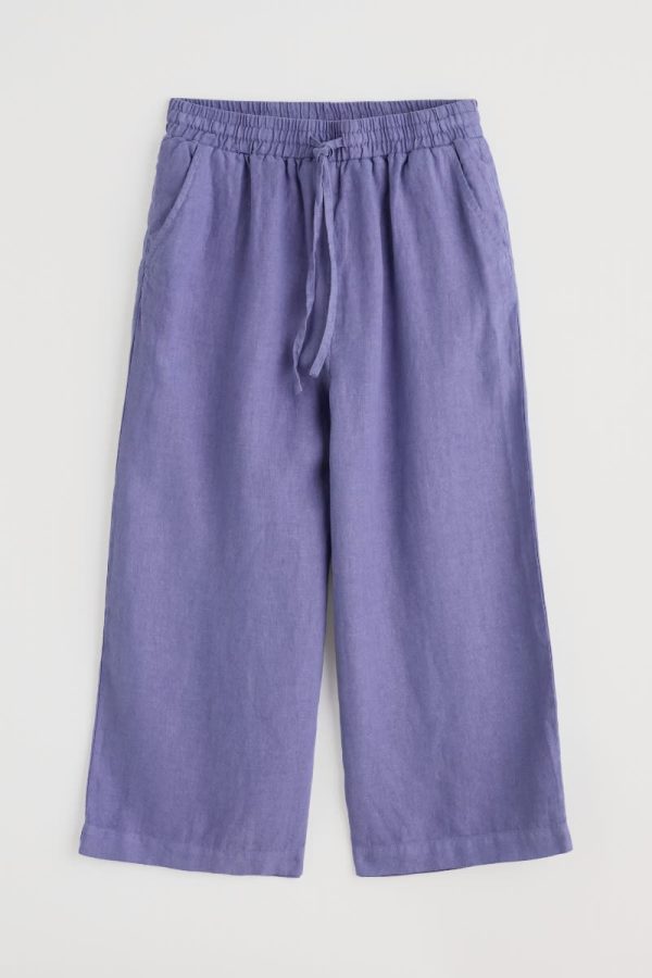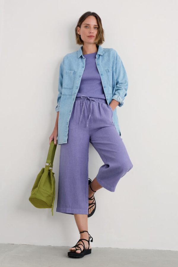A pair of cropped linen culottes to see you through the season. These versatile crops are made from lightweight and breathable pure linen, with cool wide legs and a comfortable elasticated waistband. We’ve garment-dyed them for a relaxed, lived-in look. Pockets at the front and back add a welcome finishing touch.