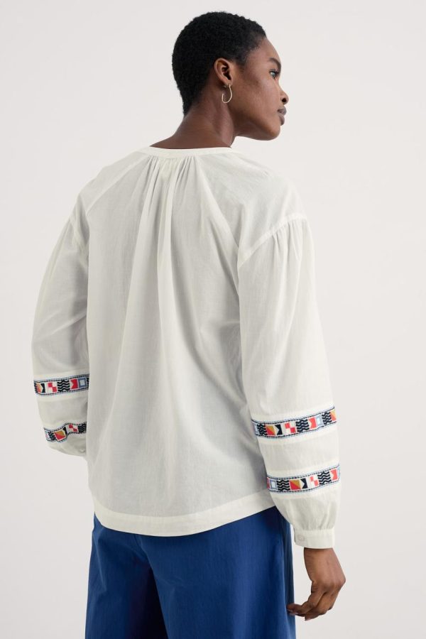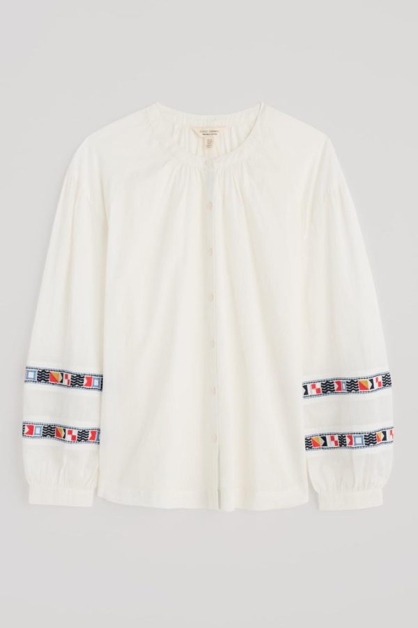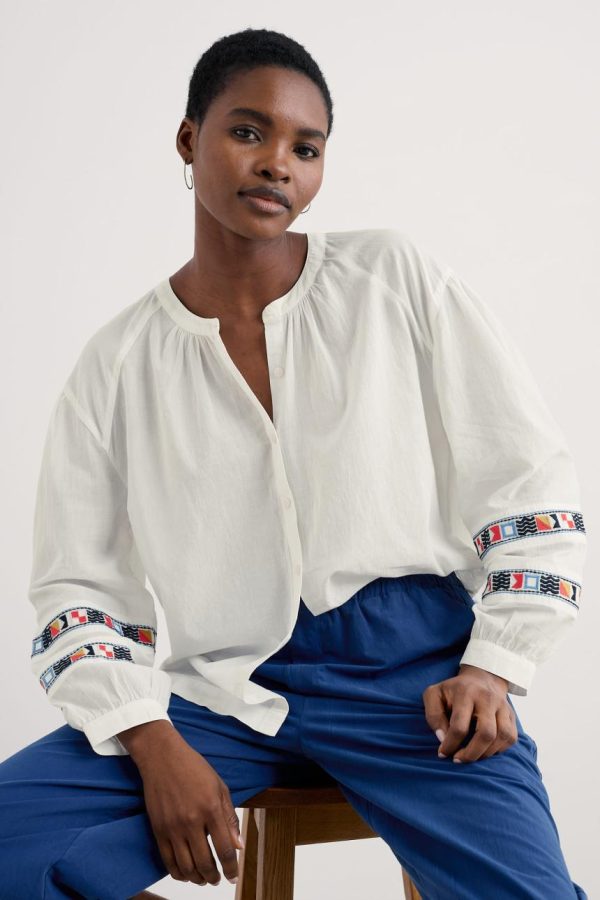 Our Weaving Sea shirt is crafted from soft and lightweight GOTS-certified organic cotton. Fine gathers at the round neckline and relaxed dropped shoulders give it a wonderfully easy feel. The buttons at the placket complement those on the cuffs. A lovely piece for effortless everyday wear.