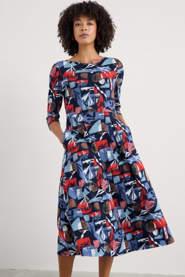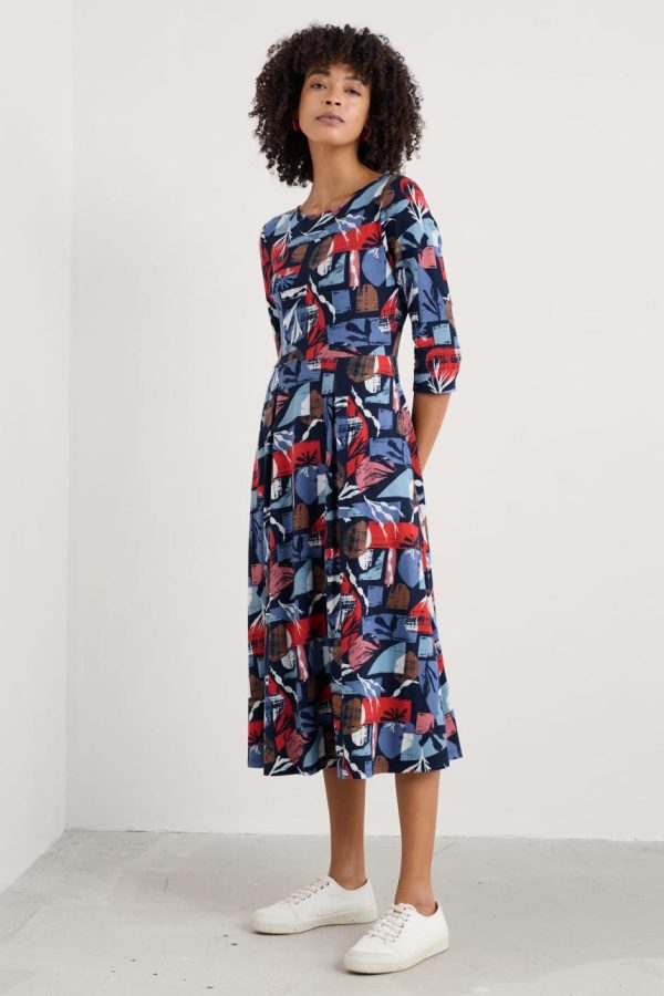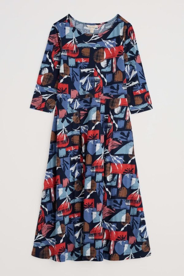A stylish 3/4 sleeve sister to our long sleeved fit-and-flare Wild Bouquet Dress, with the same full, pleated skirt. Made with a soft organic cotton jersey that’s comfortable, breathable, and has a lovely swaying drape.