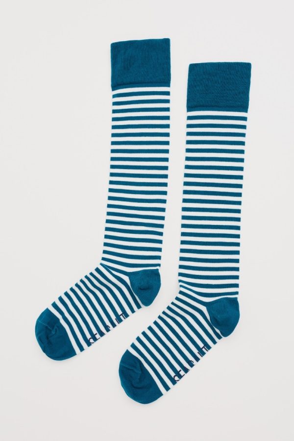 A single pair of our new longer length socks. In beautifully soft and breathable organic cotton, perfect for keeping your legs warm in the winter. In a choice of Seasalt stripes.